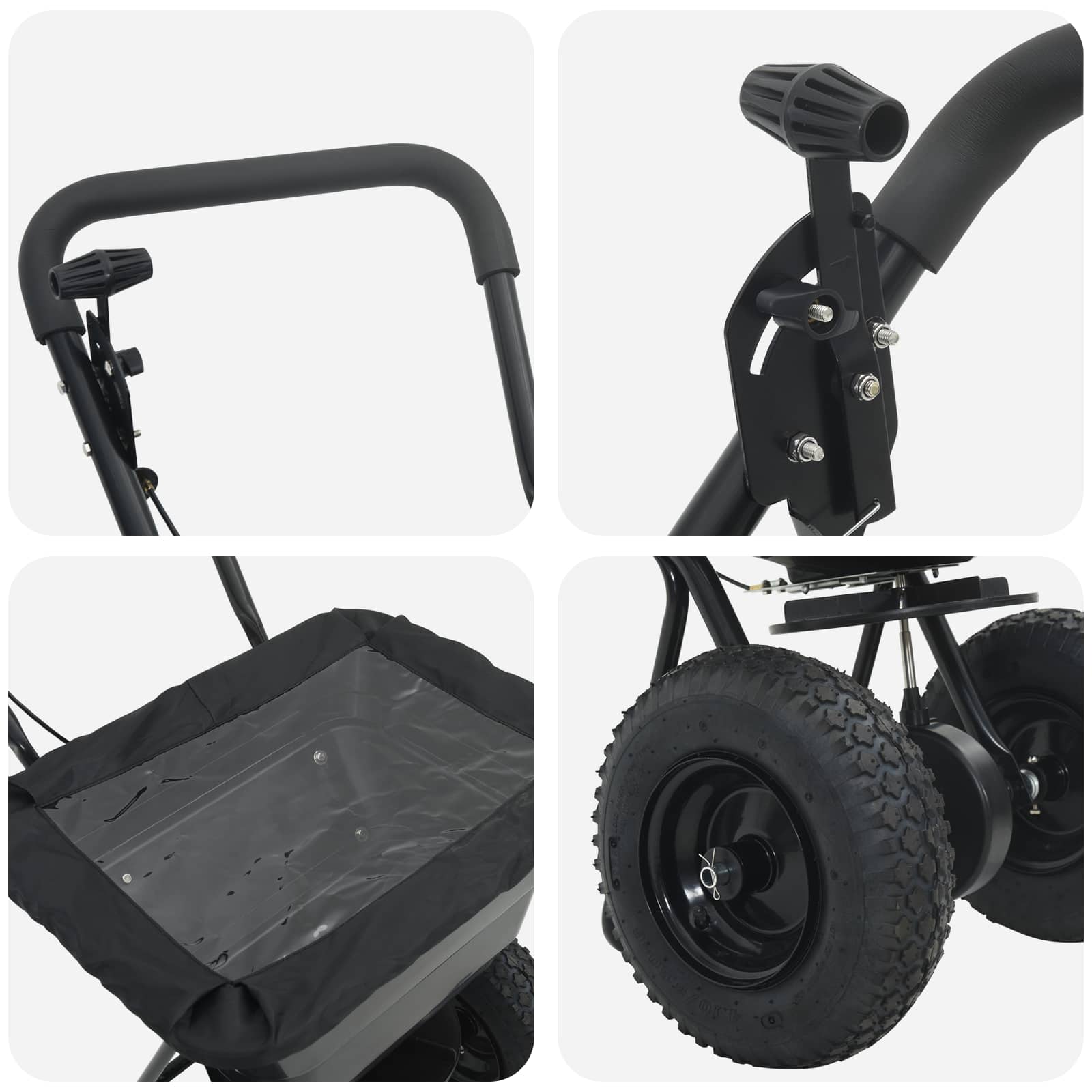 - Design funzionale: Perfetto per giardini e prati, permette di distribuire semi e fertilizzanti in modo uniforme, semplificando la manutenzione e migliorando l'aspetto e la salute delle piante.
