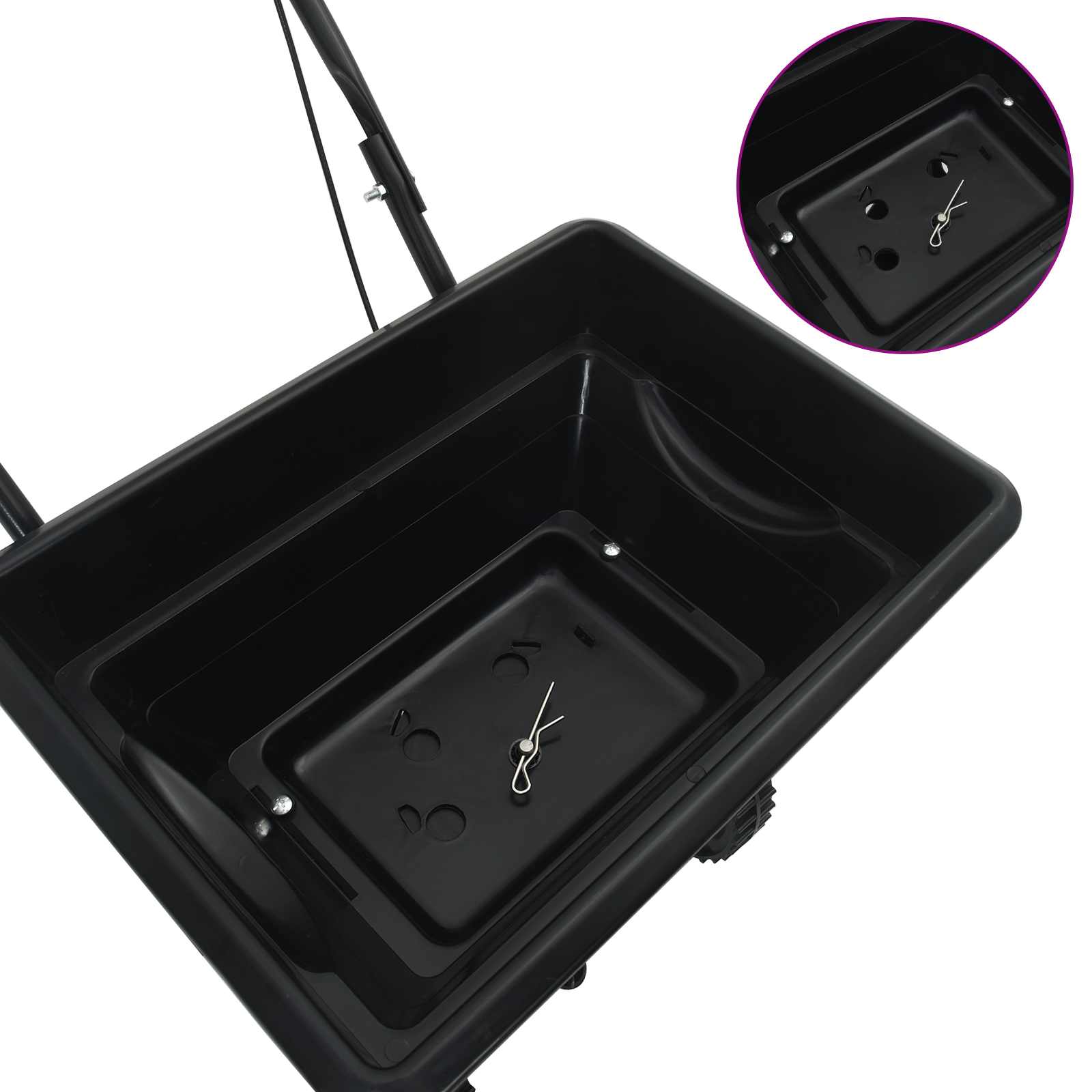 - Design funzionale: Perfetto per giardini e prati, permette di distribuire semi e fertilizzanti in modo uniforme, semplificando la manutenzione e migliorando l'aspetto e la salute delle piante.