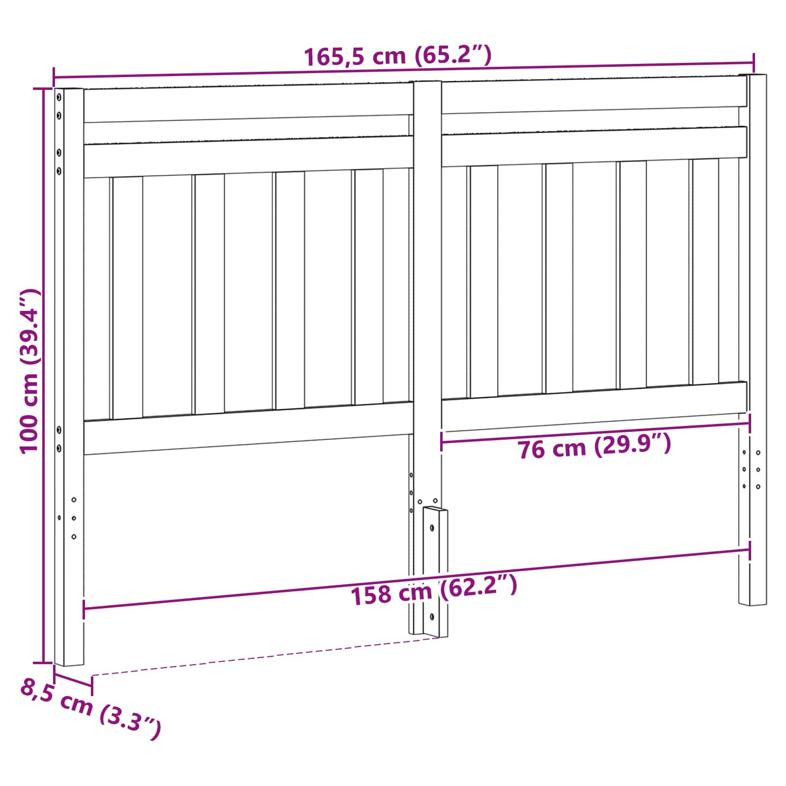 - Dimensioni complessive: 165,5 x 8,5 x 100 cm (L x P x A)