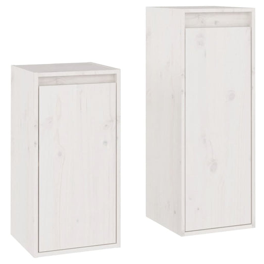 Mobili Porta TV 2 pz Bianchi in Legno Massello di Pino