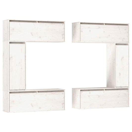 Mobili Porta TV 6 pz Bianchi in Legno Massello di Pino