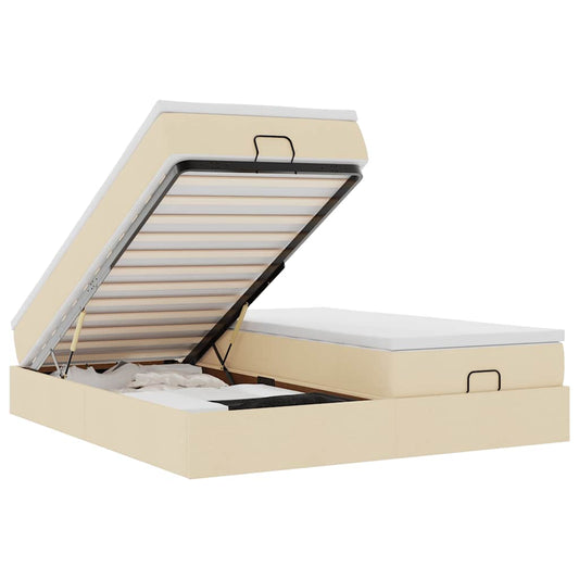 Struttura Letto Pouf con Materassi Crema 200x200 cm in Tessuto