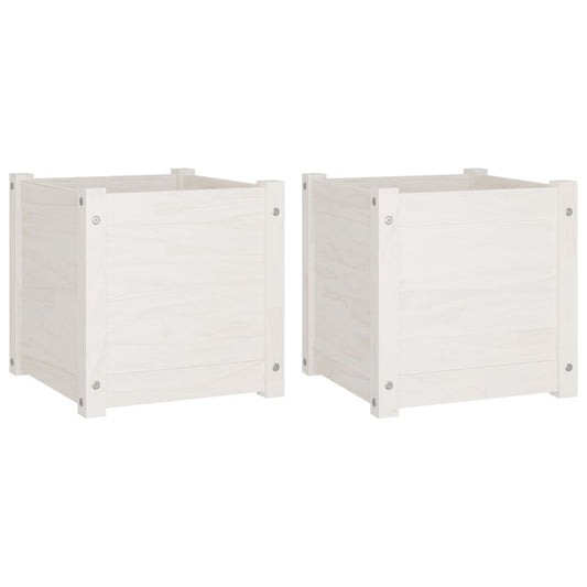 Fioriere da Giardino 2 pz Bianche 40x40x40 cm Massello di Pino