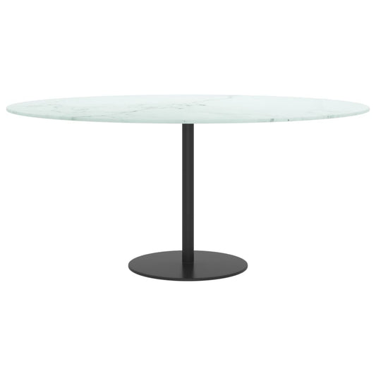 Piano per Tavolo Bianco Ø60x0,8 cm Vetro Temperato Design Marmo