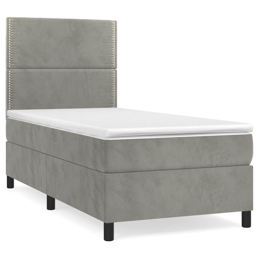 Giroletto a Molle con Materasso Grigio Chiaro 90x190 cm Velluto