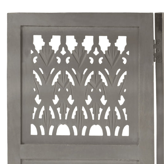 Divisorio 5 Pannelli Intagliato Grigio 200x165cm Mango Massello