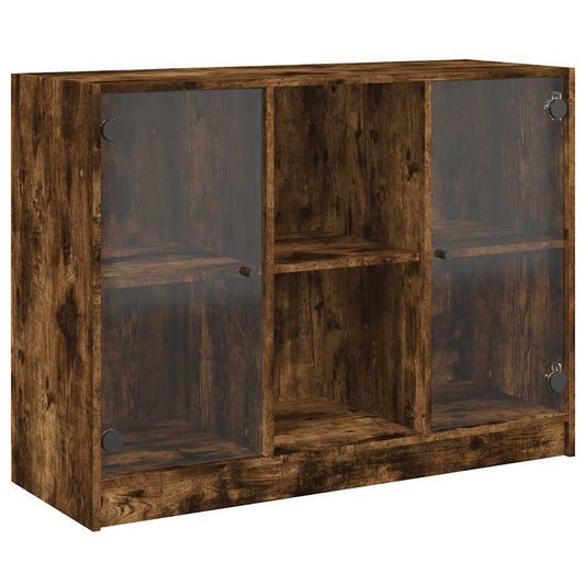 Credenza 2 pcs Rovere artigianale Legno Stratificato e Vetro