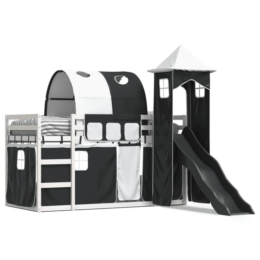 Letto a Castello con Scivolo e Tende Bianco e Nero 90x200 cm