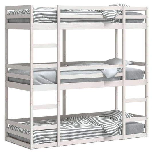 Letto a Castello Triplo Bianco 90x200 cm Legno Massello di Pino