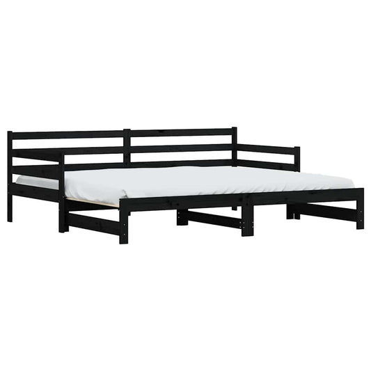 Divano Letto con Letto Estraibile Nero 90x200cm Massello Pino