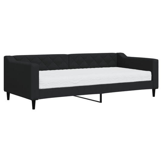 Divano Letto con Materasso Nero 90x200 cm in Tessuto