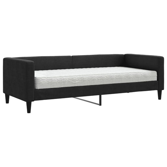 Divano Letto con Materasso Nero 100x200 cm in Tessuto