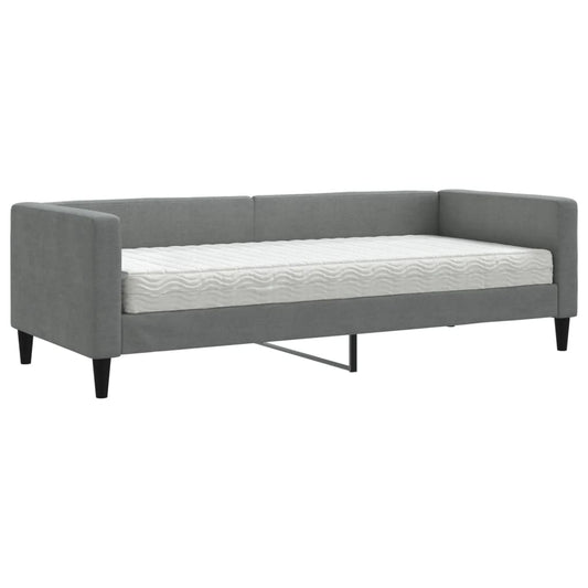 Divano Letto con Materasso Grigio Chiaro 100x200 cm in Tessuto