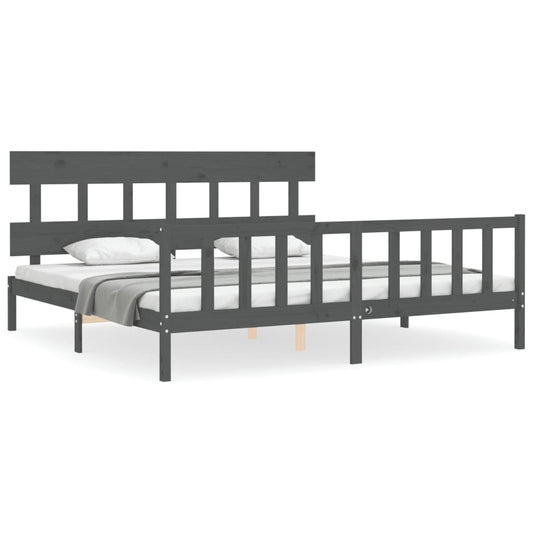 Giroletto con Testiera Grigio 200x200 cm in Legno Massello