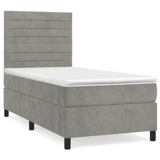 Giroletto a Molle con Materasso Grigio Chiaro 90x190 cm Velluto