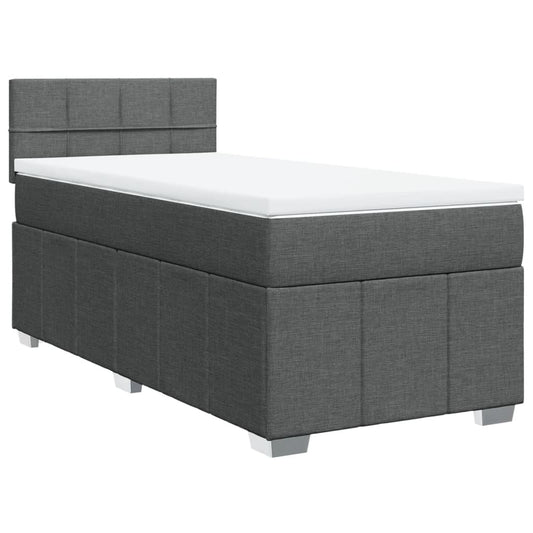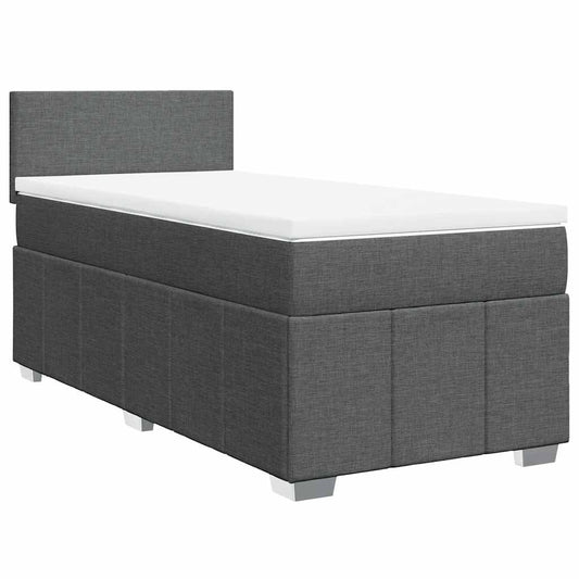 Letto a Molle con Materasso Grigio Scuro Singolo in Tessuto