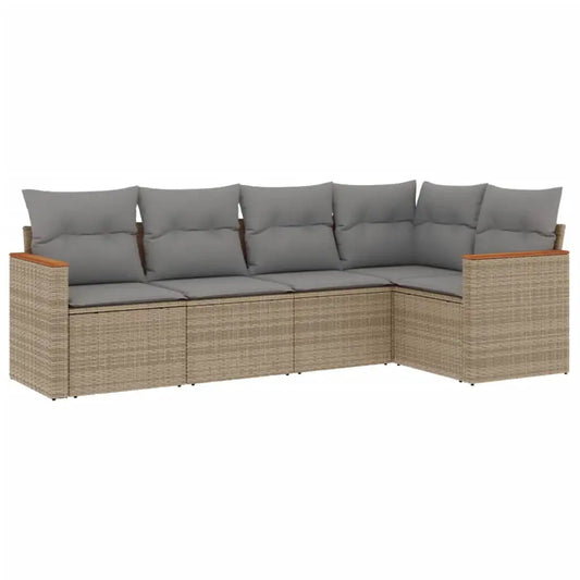 Set Divano da Giardino 5 pz con Cuscini Beige in Polyrattan