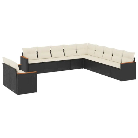 Set Divani da Giardino 11 pz con Cuscini in Polyrattan Nero