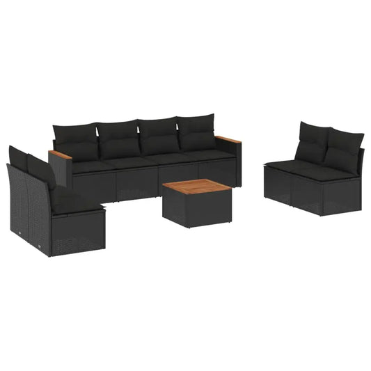 9-piece Garden Sofa Set with Black Polyrattan Cushions