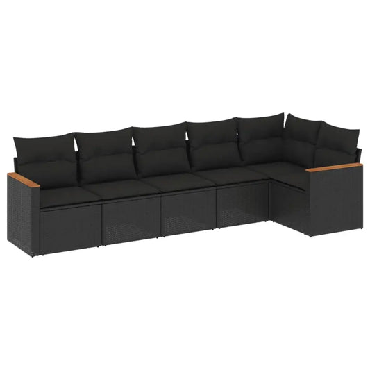 6-piece Garden Sofa Set with Black Polyrattan Cushions