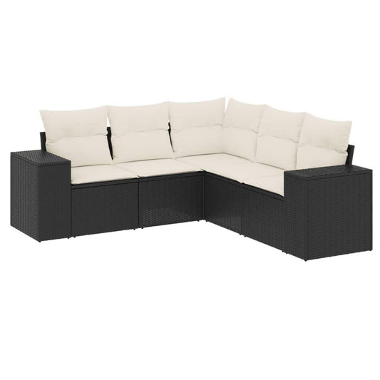 Set Divani da Giardino 5 pz con Cuscini in Polyrattan Nero