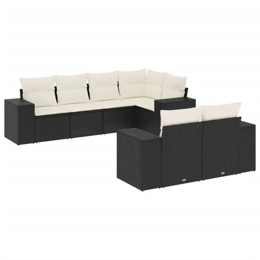 Garden Sofa Set with Cushions 7pcs Black Polyrattan