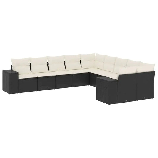 10pc Garden Sofa Set with Black Polyrattan Cushions