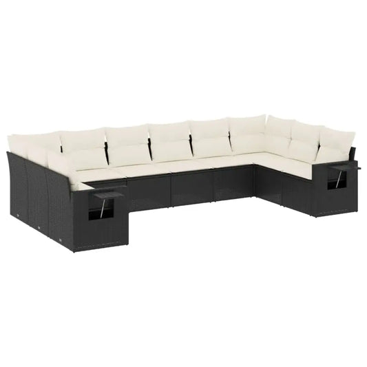10pc Garden Sofa Set with Black Polyrattan Cushions