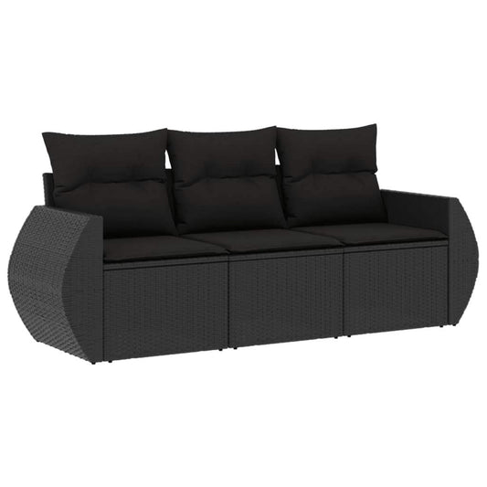 3-piece Garden Sofa Set with Black Polyrattan Cushions