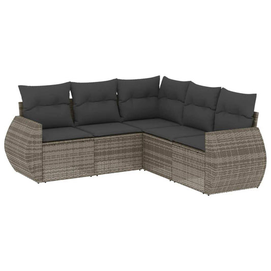 5 pc Garden Sofa Set with Gray Polyrattan Cushions