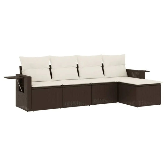 4-piece Garden Sofa Set with Brown Polyrattan Cushions
