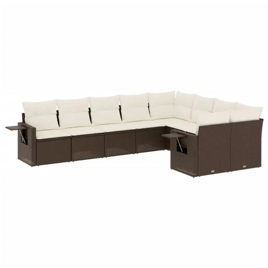 10pc Garden Sofa Set with Brown Polyrattan Cushions