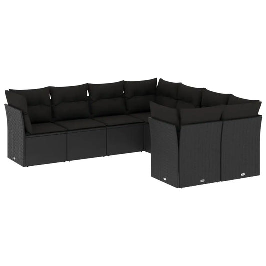 Set Divani da Giardino 9 pz con Cuscini Nero in Polyrattan