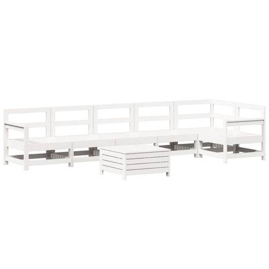 Set Divani da Giardino 7 pz Bianco in Legno Massello di Pino