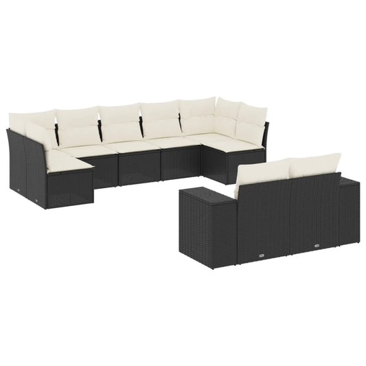 Set Divani da Giardino 9 pz con Cuscini Nero in Polyrattan