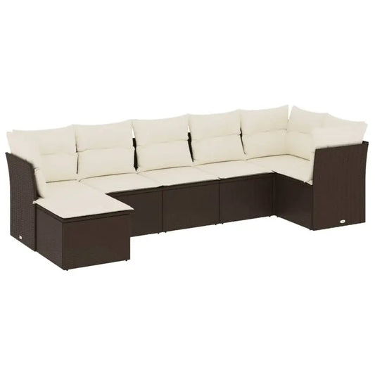 Set Divani da Giardino 7 pz con Cuscini Marrone in Polyrattan