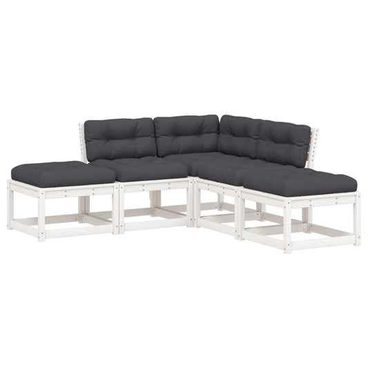 Set Divani Giardino 5pz con Cuscini Bianco Legno Massello Pino