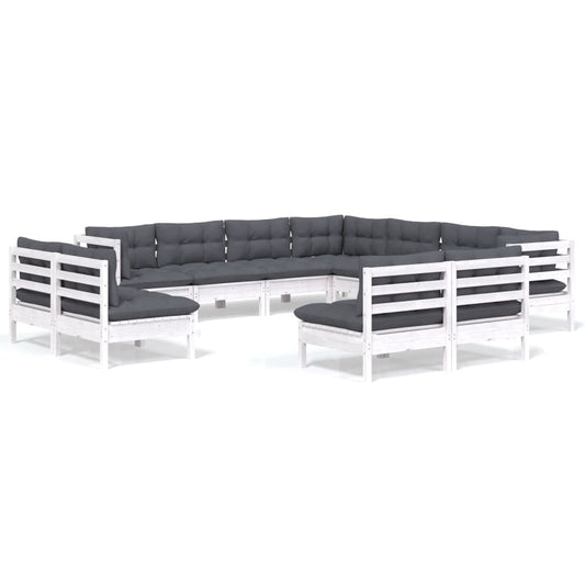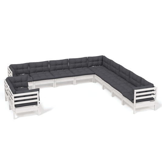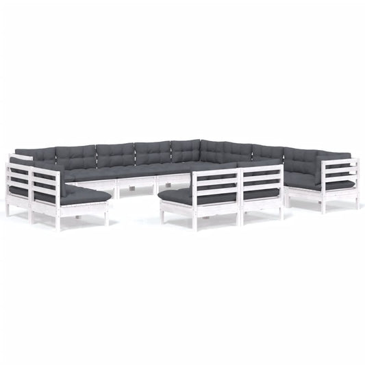 Set Divani da Giardino 12 pz con Cuscini Legno di Pino Bianco