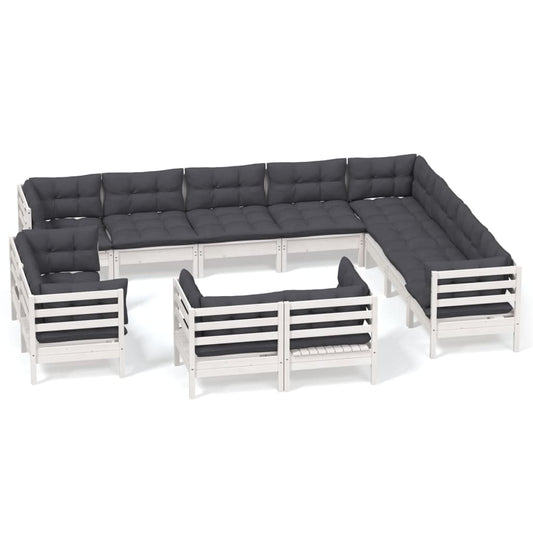 Set Divani da Giardino 13 pz con Cuscini Bianchi Legno di Pino