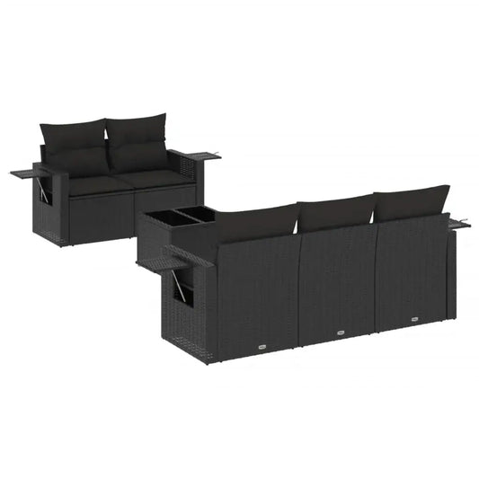Set Divani da Giardino con Cuscini 7pz Nero Polyrattan