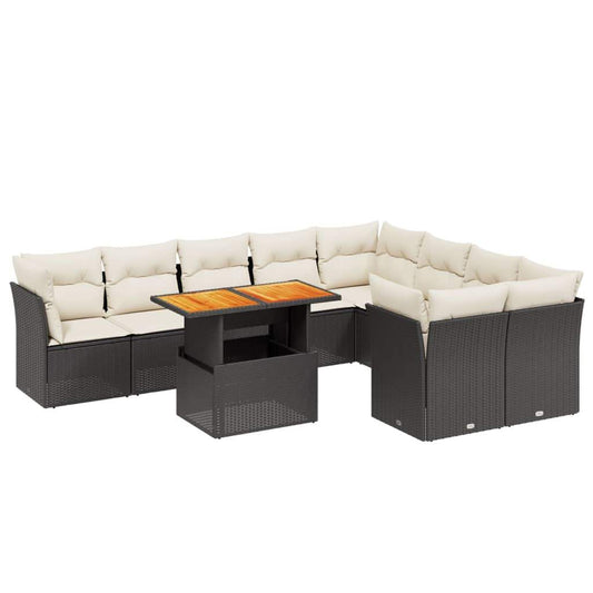 Set Divani da Giardino 10pz con Cuscini in Polyrattan Nero