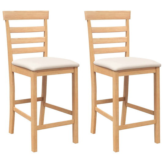 Sgabelli da Bar con Cuscini 2pz Naturale Legno Massello Hevea
