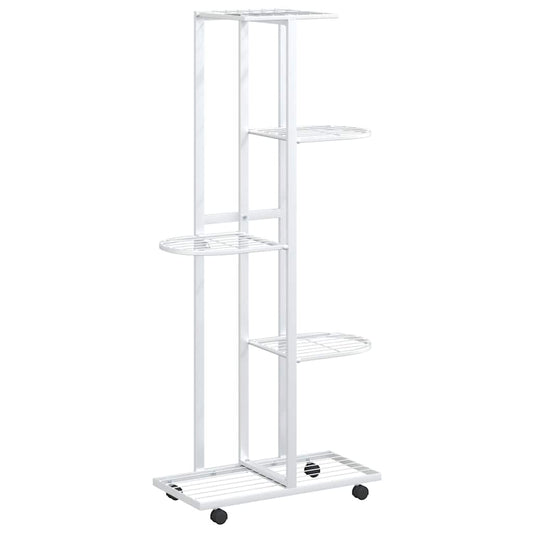 Fioriera a 5 Piani con Ruote 44x23x100 cm Ferro Bianco