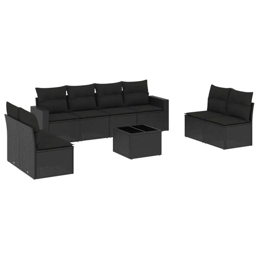 Set Divani da Giardino 9 pz con Cuscini Nero in Polyrattan