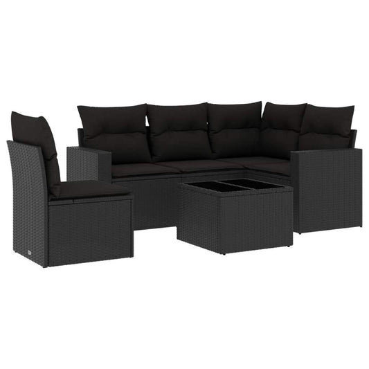 Set Divano da Giardino 6 pz con Cuscini Nero in Polyrattan