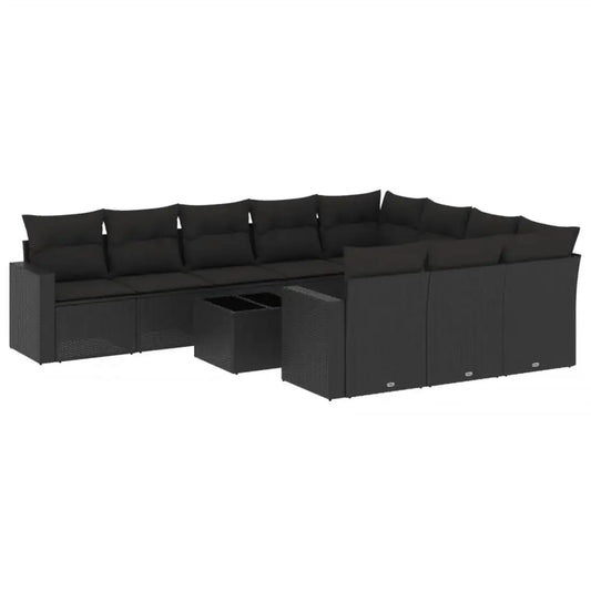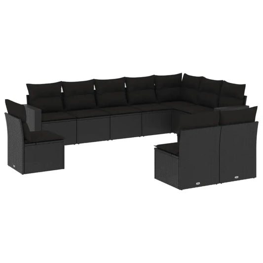 Set Divani da Giardino 11 pz con Cuscini in Polyrattan Nero