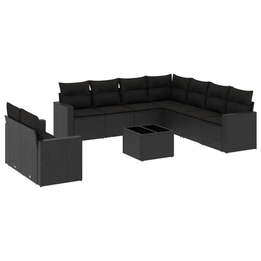 Set Divani da Giardino 10pz con Cuscini in Polyrattan Nero