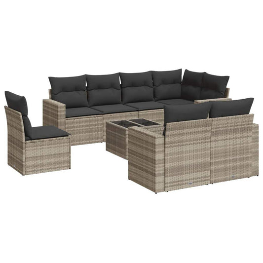 Set Divano Giardino 10 pz con Cuscini Grigio Chiaro Polyrattan