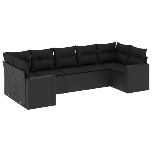 Set Divani da Giardino con Cuscini 7pz Nero Polyrattan