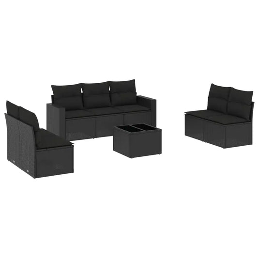 Set Divani da Giardino con Cuscini 7pz Nero Polyrattan
